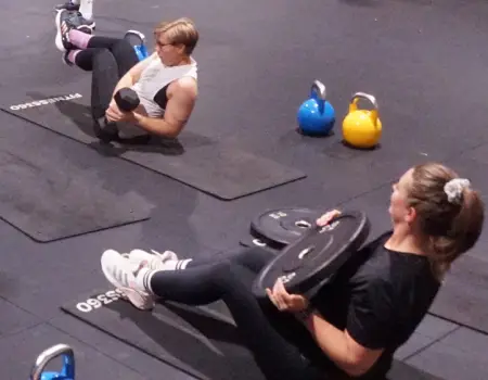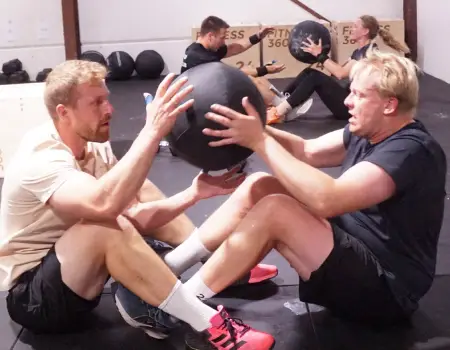 Sammen arbejder I jer igennem dagens workout, hvor samarbejde og god energi gør træningen både sjovere og mere motiverende.